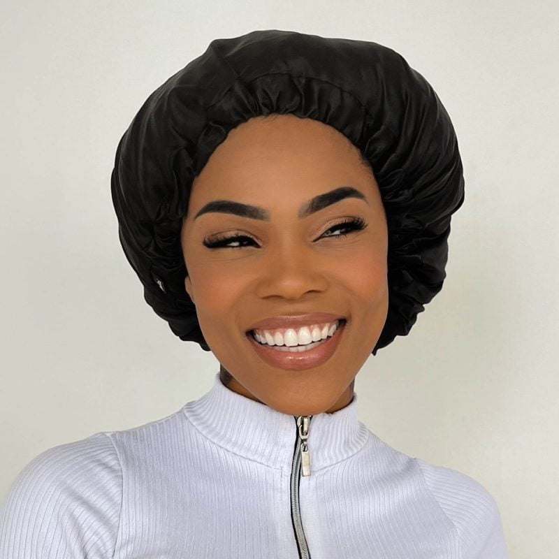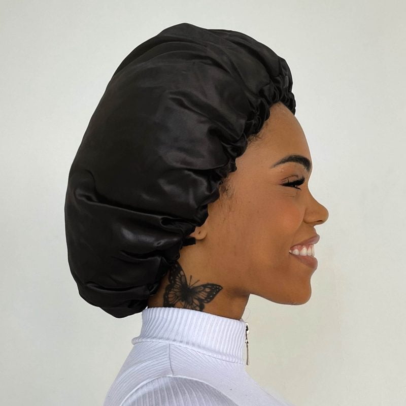 The Satin Bonnet with double layer reduces frizz up to 90% while sleeping. Amazing right?