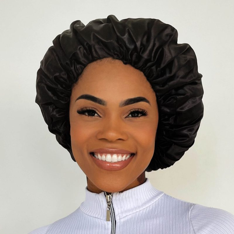 Black – Anti Frizz Satin Bonnet – Adjustable M | Soulta